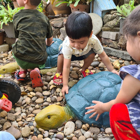 โดยรวมสถานที่ของเรา ห้อมล้อมด้วยแมกไม้อันเขียวขจี และพื้นที่เรียนรู้กลางแจ้ง นอกจากจะเต็มไปด้วยหมู่ไม้แล้ว ยังมีแสงธรรมชาติสาดส่องที่ช่วยส่งเสริมกระบวนการเรียนรู้และการสำรวจโลกธรรมชาติให้กับเด็กๆได้เป็นอย่างมากอีกด้วย ตามแนวคิด ‘พื้นที่สีเขียวสำหรับการเรียนรู้’